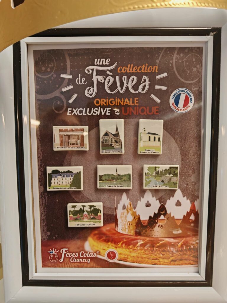 Objectif : Mettre en avant le patrimoine de Plessé en illustrant la collection de 7 fèves pour les galettes de la Boulangerie Lemarchand située à Plessé (Loire Atlantique – Pays de la Loire). Une illustration représente la devanture de la boulangerie.