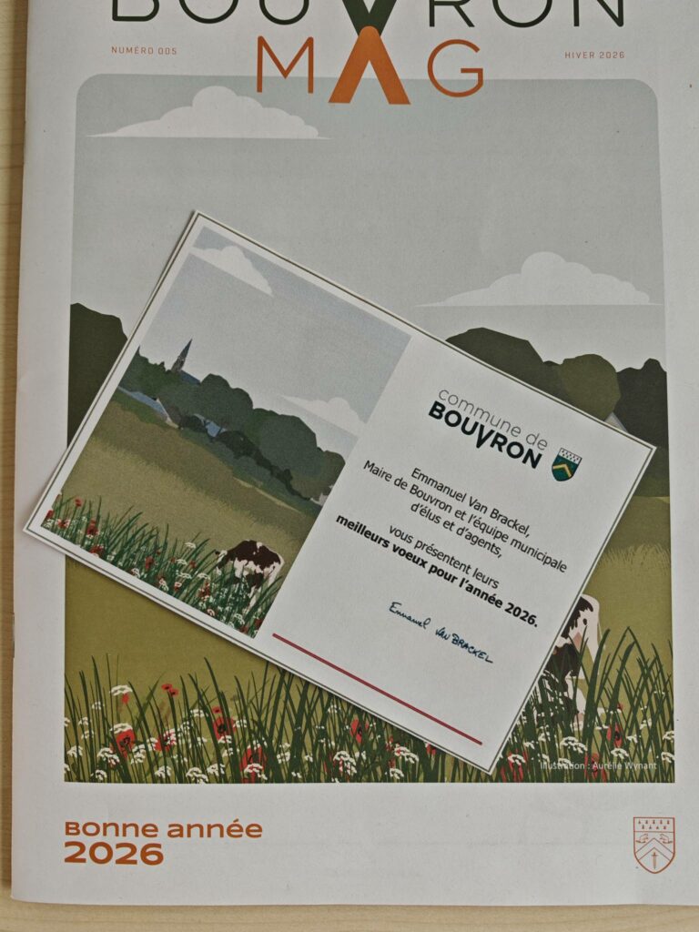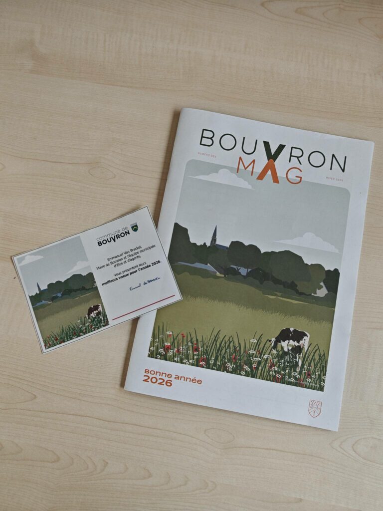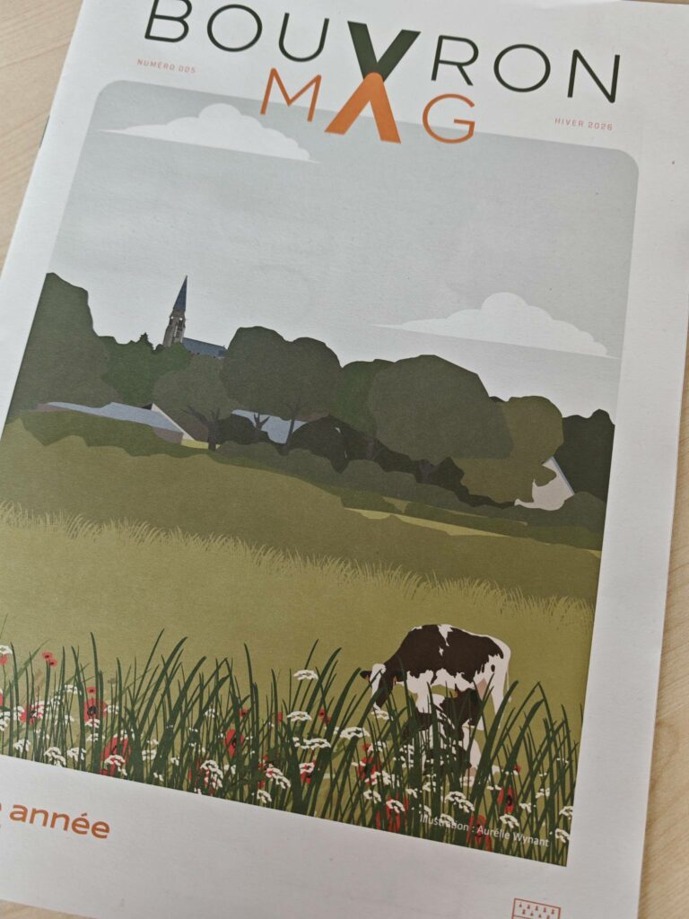 Illustration sur carte de vœux et Une du magazine municipal de Bouvron (44)