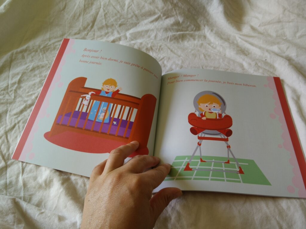 Découvre ce que fait Haya pendant la journée. L’enfant apprend les rituels de la journée : se laver les mains, se brosser les dents, s’habiller, …