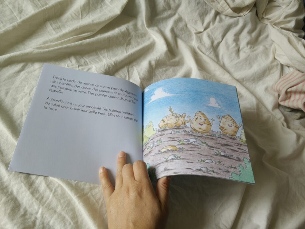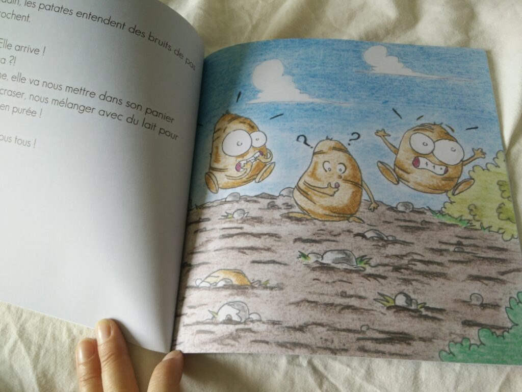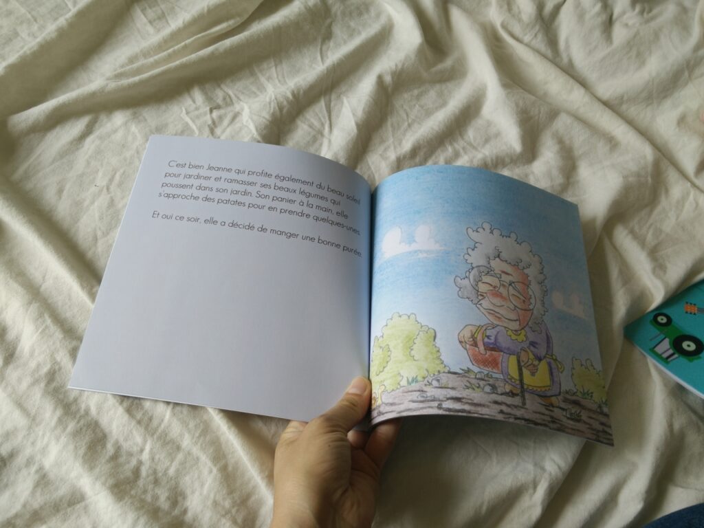 Dans le jardin de Jeanne on trouve plein de légumes et des patates. Elles sont sorties de la terre pour profiter du soleil. Mais voila, Jeanne va dans le jardin pour ramasser ses beaux légumes et ce soir elle veut manger une purée ! Découvrez l’aventure d’une patate qui ne veut pas finir en purée.