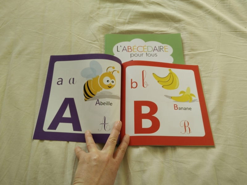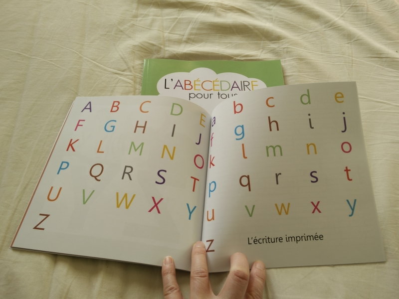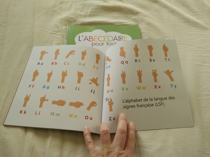 26 lettres illustrées, tout en couleur. Les lettres sont en écriture imprimée, écriture manuscrite, en minuscule et en majuscule. Ce livre permet également de découvrir l’alphabet dans la langue des signes française (LSF).