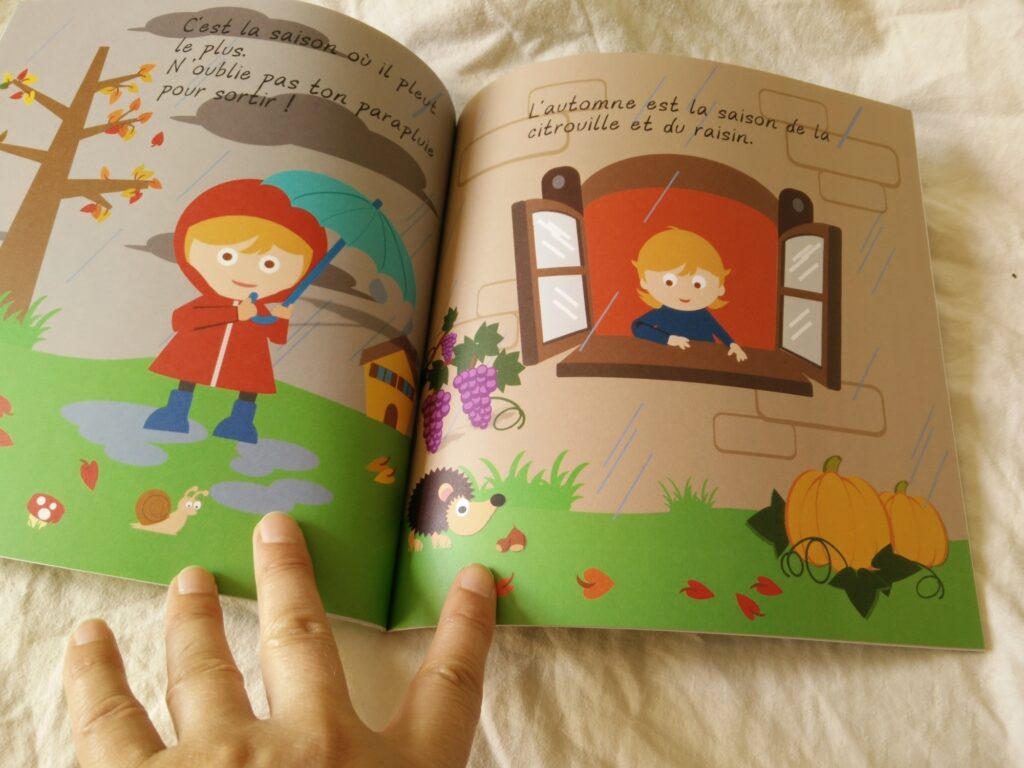 L’enfant découvre avec Haya les 4 saisons : printemps, été, automne, hiver. La nature se transforme. Le temps change. Les activités évoluent selon le temps.