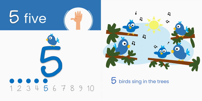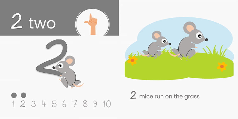 With the numbers picture book, your child will learn to count while having fun using animals and colors.