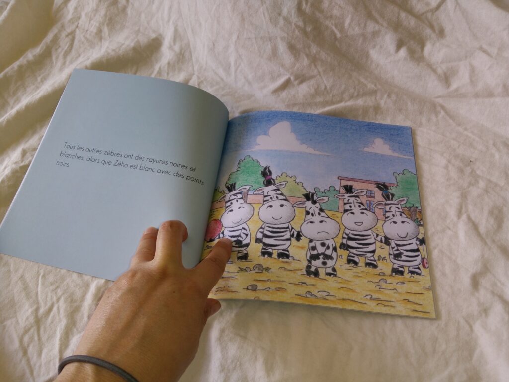 Zého est un petit garçon zèbre. D’après lui, il est un zèbre pas comme les autres. Tous les autres zèbres ont des rayures noires et blanches, alors que Zého est blanc avec des points noirs.
