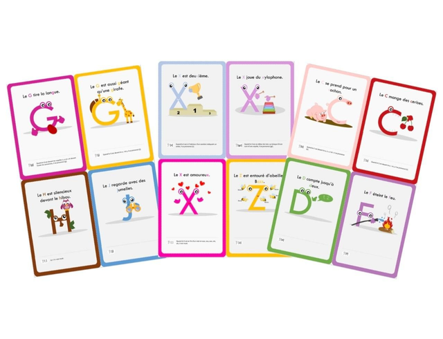 L’enfant apprend le son des lettres grâce à des illustrations colorées mettant en action chaque lettre à l’aide d’une phrase courte contenant le son de la lettre.