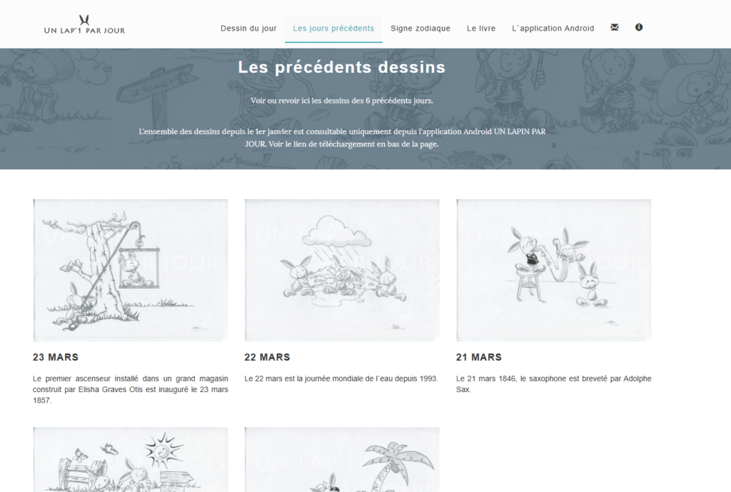 Rendu du site Un lapin par jour – Les précédents dessins